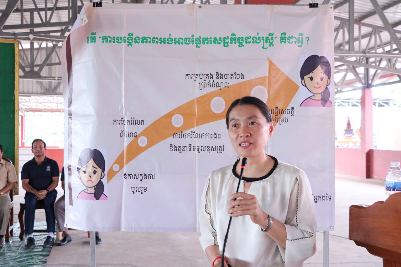 លោកជំទាវអភិបាលរងខេត្ត បានបន្តទៀតថាគោលនយោបាយរបស់រាជរដ្ឋាភិបាលកម្ពុជាគឺ ផ្តល់ឱកាសការងារជូនប្រជាពលរដ្ឋក្នុងការបង្កើនប្រាក់ចំណូលទាំងនៅក្នុងស្រុក និងនៅក្រៅស្រុក។ ពលករមួយចំនួនទទួលបានកម្រៃ និងលើកកម្ពស់ជីវភាព បានយ៉ាងល្អតាមការរំពឹងទុក ប៉ុន្តែអ្វីដែលជាការព្រួយបារម្ភនោះគឺ ការធ្វើទេសន្តរប្រវេសន៍ដោយប្រថុយប្រថានមិនមានការធានាផ្នែកច្បាប់ និងមិនមានការគ្រប់គ្រងច្បាស់លាស់ដែលនាំឱ្យមានហានិភ័យក្នុងការ កេងប្រវ័ញ្ចកម្លាំងពលកម្ម និងមានការជួញដូរមនុស្ស។